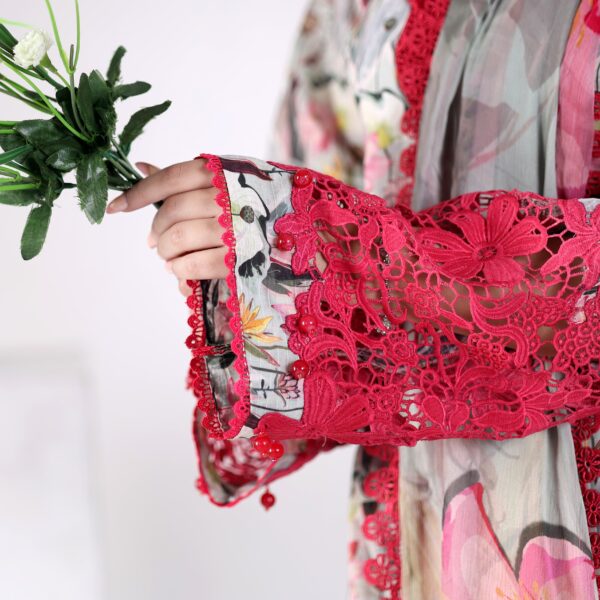Dupatta: printed shafoon with laces and finishing