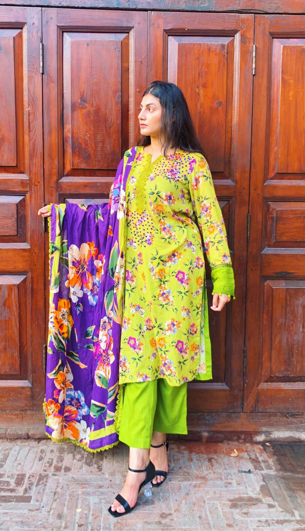 Fabric Details: Dupatta: printed lawn with laces and finishing